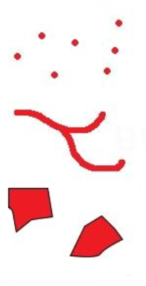 The second type of geospatial data is vector data. This is a co-ordinate-based data structure comprised of nodes and lines that can be scaled infinitely. Vectors are comprised of three formats, points, lines and polygons. In some geospatial file types (such as ESRI Shapefiles) different geometries cannot be contained in the same file so for any given area you would need one file for polygons, one for points and one for lines.